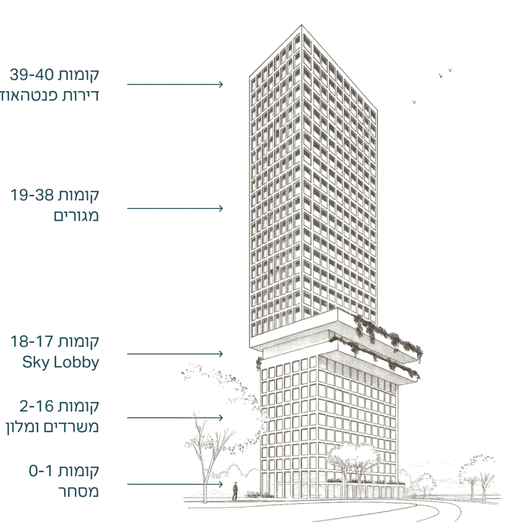 המגדל לא מציע רק דירות ומשרדים – אלא כניסה לעולם סגור, מנוהל ומוקפד, המיועד לקהילה מצומצמת של בעלי דירות ועסקים, השותפים יחד לאורח חיים אחר.